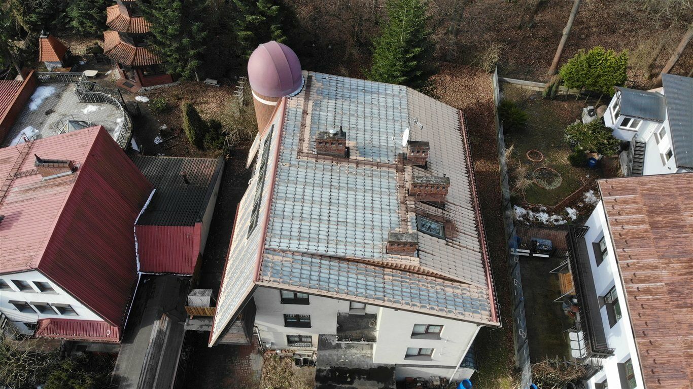 Dom, z obserwatorium astronomicznym w bryle, został wybudowany według indywidualnego projektu w technologii tradycyjnej unowocześnionej.