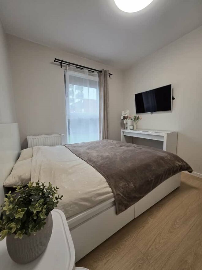 W cenie pozostaje w pełni umeblowana i wyposażona kuchnia i zabudowa na wymiar w przedpokoju. Na wyposażeniu także klimatyzacja w salonie oraz rolety zewnętrzne we wszystkich oknach.