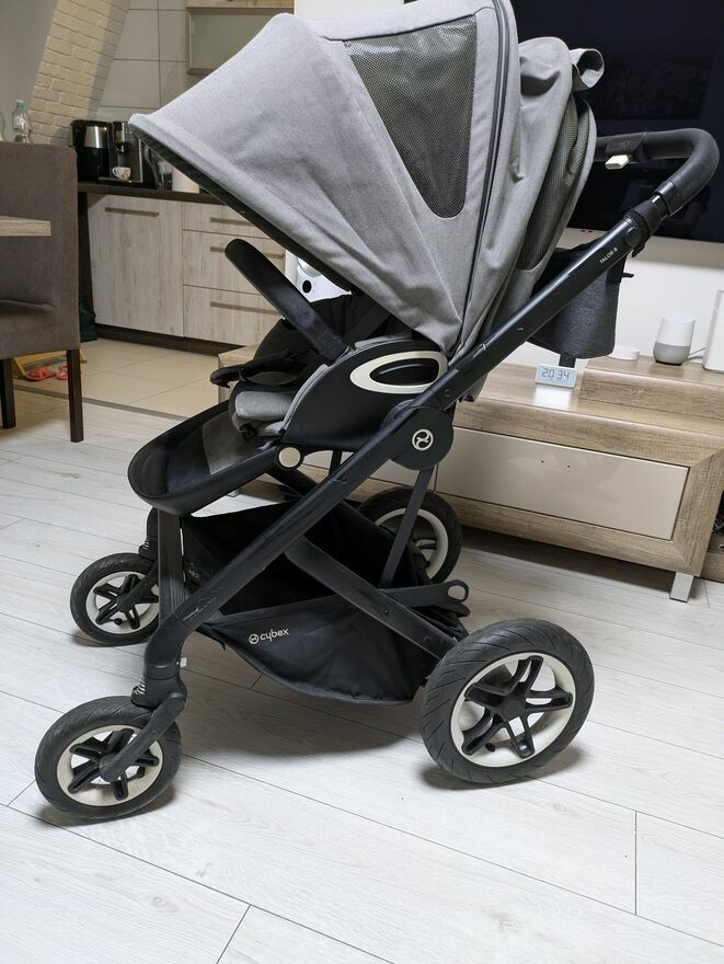 Wózek spacerowy dziecięcy Cybex Talos S dodatkowo gondola. Kolor szary.Amortyzacja na kołach, możliwość montażu spacerówki w dwie strony.Nadaje się na nierówne nawierzchnie. Niewielkie ślady użytkowania.Anna
